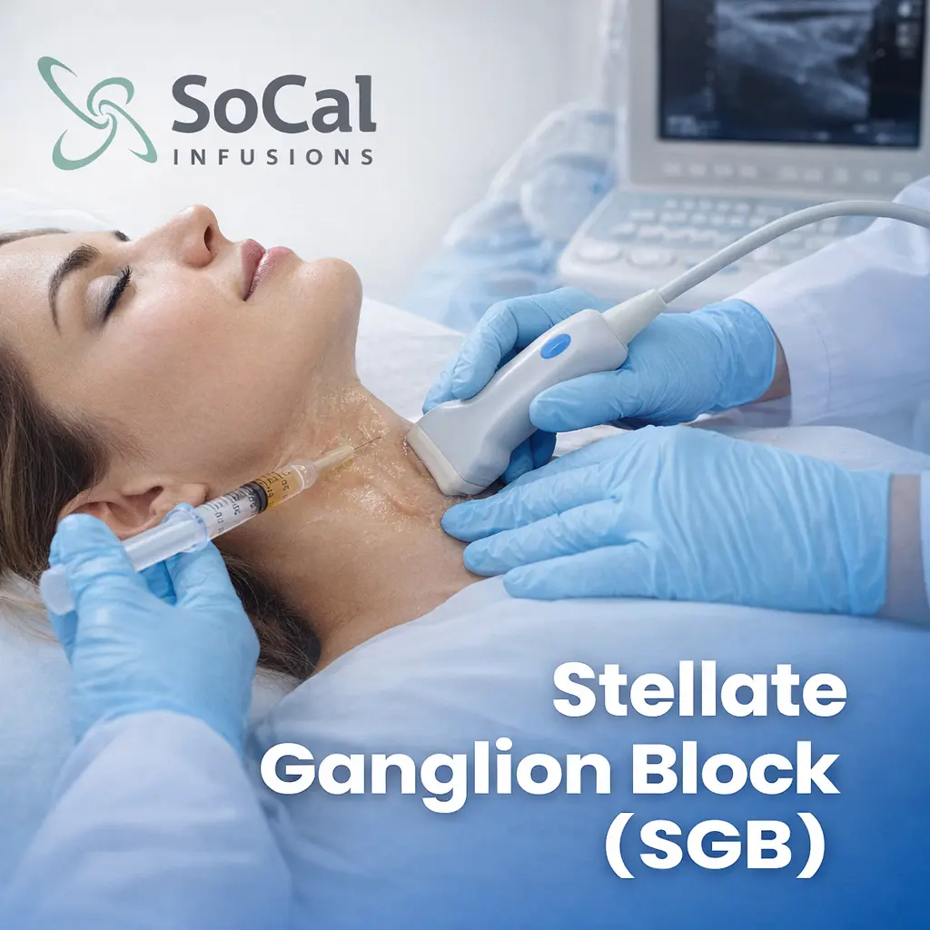 Stellate Ganglion Block (SGB) is a minimally invasive procedure offered in Southern California that targets nerves in the neck involved in the body’s stress and fight-or-flight response.